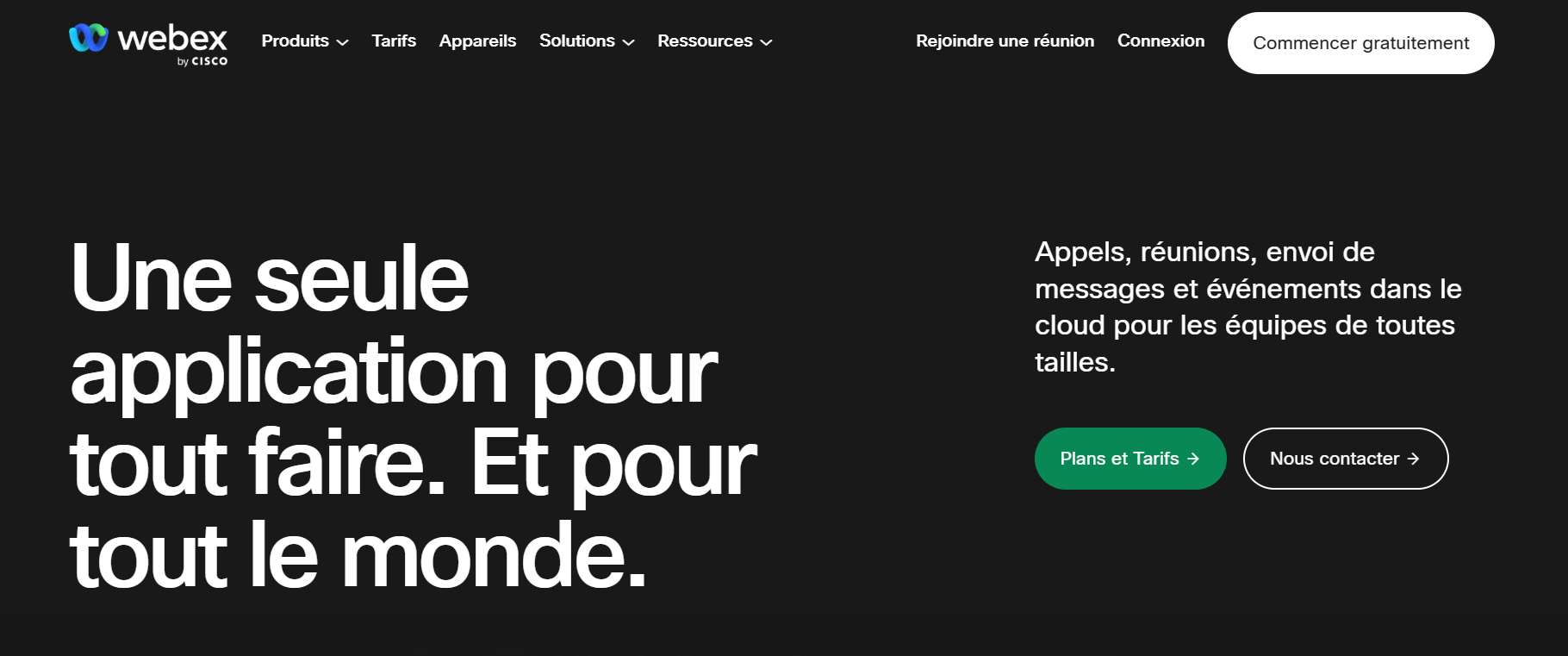 | 4. Cisco Webex | Sécurité avancée + traduction simultanée | Version gratuite, puis 14,50€/utilisateur/mois |