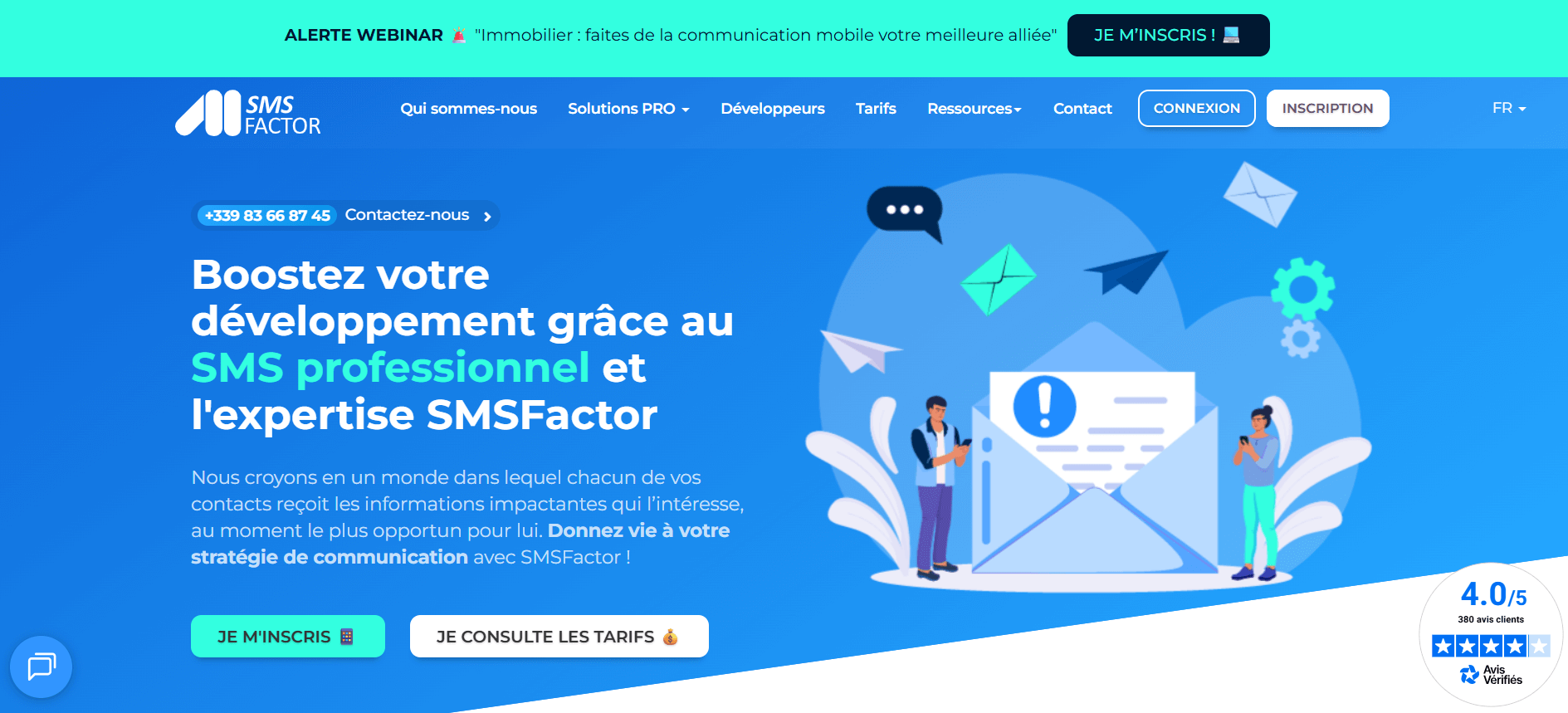 | SMSFactor | Plateforme marketing complète | À partir de 0,035 € / SMS | Oui |